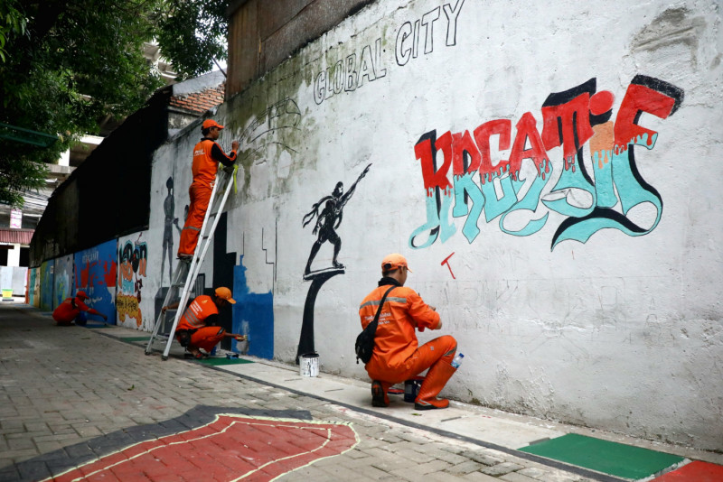 PPSU Kebon Sirih Buat Mural di Gang Kebon Sirih Barat 6