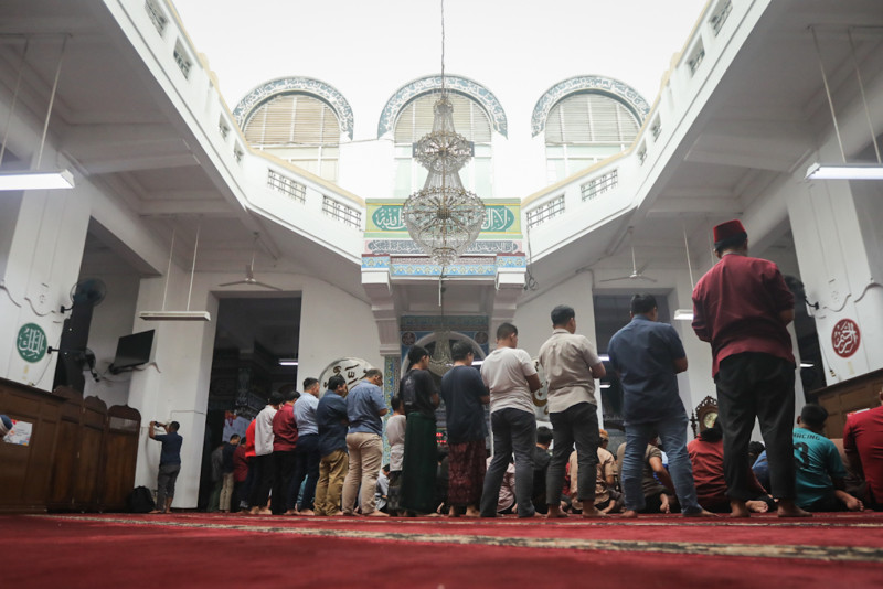 Sejumlah umat Muslim mengisi waktu di bulan Ramadan dengan beribadah di Masjid Cut Meutia, Menteng, Jakarta Pusat, Selasa (12/3). Bangunan Masjid Cut Meutia merupakan salah satu peninggalan bersejarah dari zaman kolonialisme Belanda yang dibangun pada tahun 1879. #ramadan2024