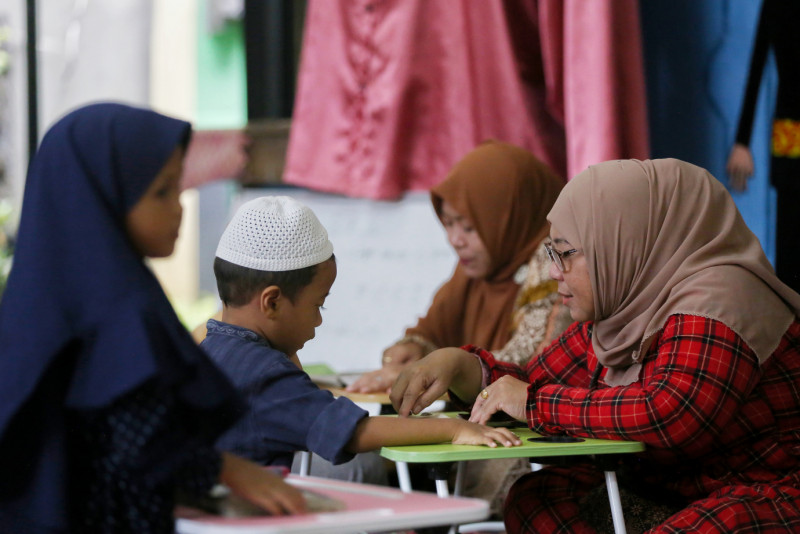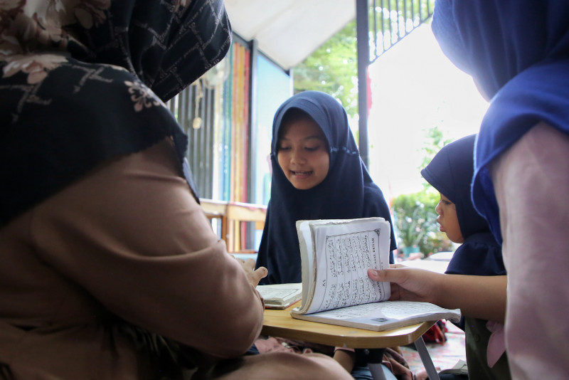 Sebanyak 20 anak-anak dari usia 4-12 tahun mengikuti kegiatan Pesantren Kilat di RPTRA Malinjo, Pasar Minggu, Jakarta Selatan, Rabu (13/3). Pesantren Kilat ini merupakan kegiatan \"Gema Ramadan Malinjo\" yang digelar oleh pengelola RPTRA Malinjo dan PKK Pokja I Kelurahan Pejaten Barat. #ramadan2024