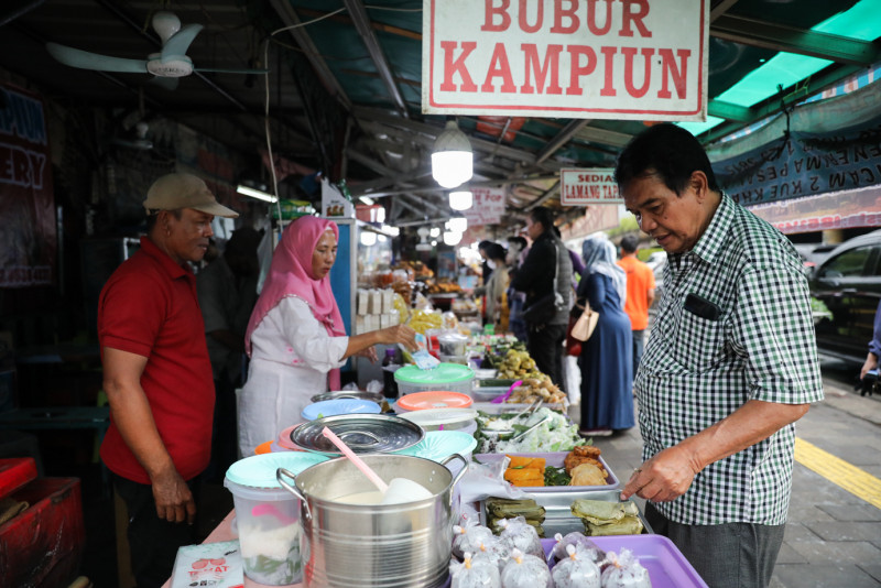 Sejumlah warga memilih menu berbuka puasa di Sentra Kuliner Nasi Kapau di Jalan Kramat Raya, Senen, Jakarta Pusat, Senin (18/3). Sentra Kuliner Nasi Kapau ini merupakan lokasi binaan (Lokbin) Dinas PPKUKM DKI Jakarta yang menjadi salah satu tempat favorit warga untuk berburu menu berbuka puasa berupa makanan khas Sumatera Barat. #ramadan2024