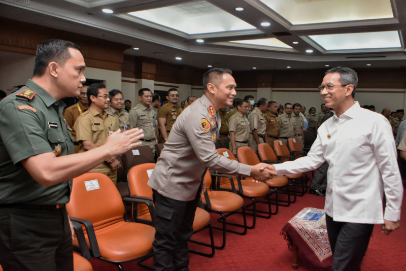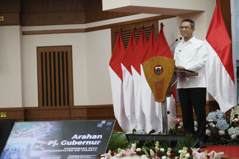 Penjabat (Pj) Gubernur DKI Jakarta, Heru Budi Hartono membuka Musyawarah Rencana Pembangunan (Musrembang) Jakarta Barat Tahun 2024 di Ruang Pola Kantor Walikota Jakarta Barat, Jalan Kembangan Raya, Kembangan Selatan, Kembangan, Jakarta Barat, Senin (25/3) Dalam sambutannya Pj. Gubernur Heru menekankan, pengusulan program prioritas difokuskan pada penanggulangan banjir dan penanganan kemacetan lalu lintas.