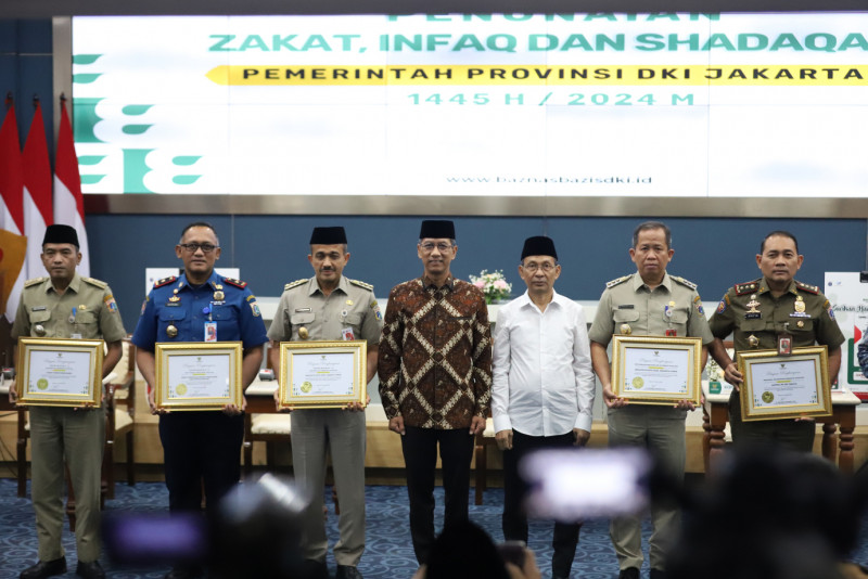 Penjabat (Pj) Gubernur DKI Jakarta, Heru Budi Hartono beserta jajaran Pemprov DKI Jakarta menunaikan dan menyalurkan Zakat, Infaq dan Sedekah (ZIS) melalui Baznas Bazis Provinsi DKI Jakarta, di Balai Kota Jakarta, Selasa (26/3). Penunaian dan penyaluran ZIS ini dikemas dalam acara bertema Ramadan Memerdekakan: Merdekanya Mustahik, Berkahnya Muzaki. #ramadan2024