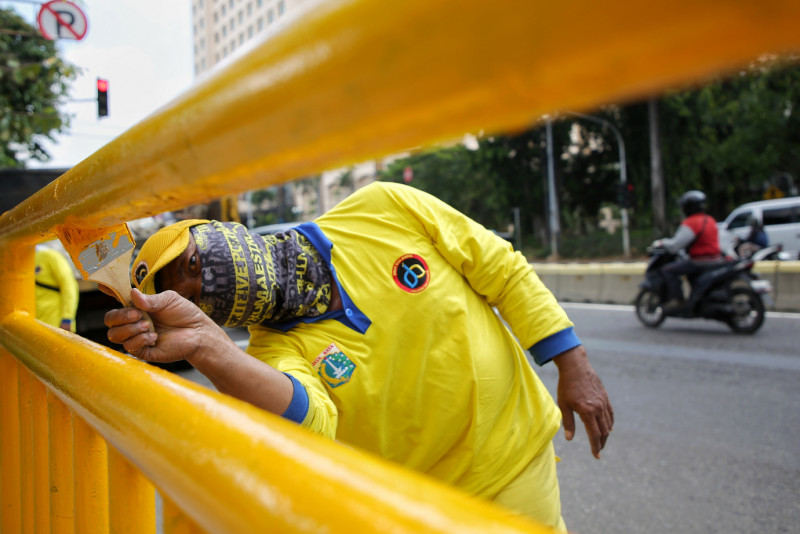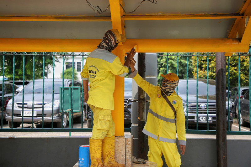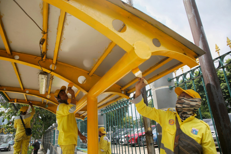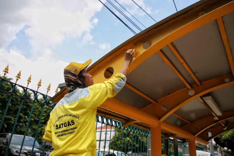 Satgas Bina Marga Kecamatan Senen melakukan perawatan Halte Bus RSPAD di Jalan Senen Raya, Senen, Jakarta Pusat. Selain kembali membuat bersih dan indah tampilan halte, perawatan tersebut juga diharapkan menambah kenyamanan bagi pengguna halte tersebut.