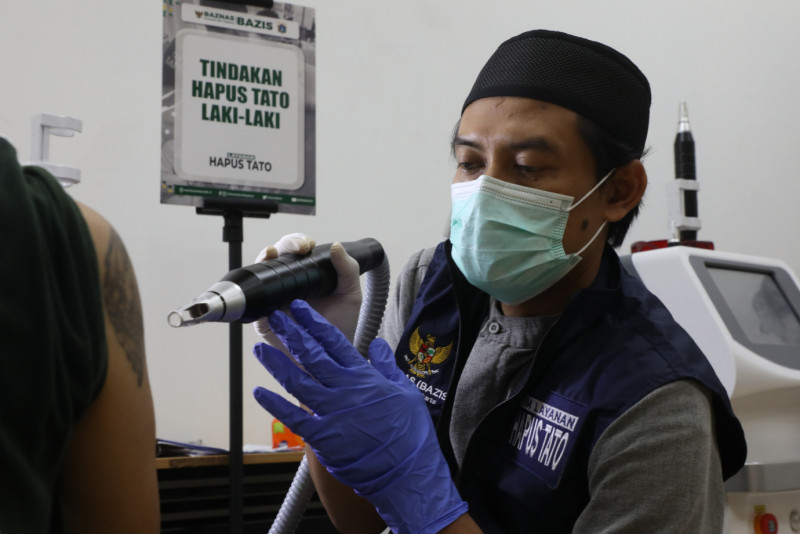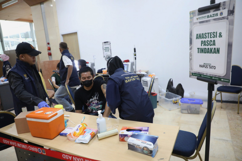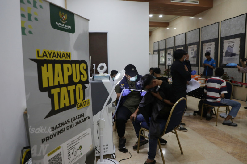 Baznas Bazis DKI Jakarta menggelar layanan hapus tato di lantai dasar Blok G Balaikota Provinsi DKI Jakarta, Selasa (2/3). Dalam kegiatan ini sebanyak 55 peserta mengikuti kegiatan hapus tato yang dilaksanakan secara gratis. #ramadan2024