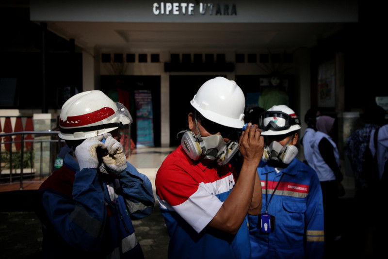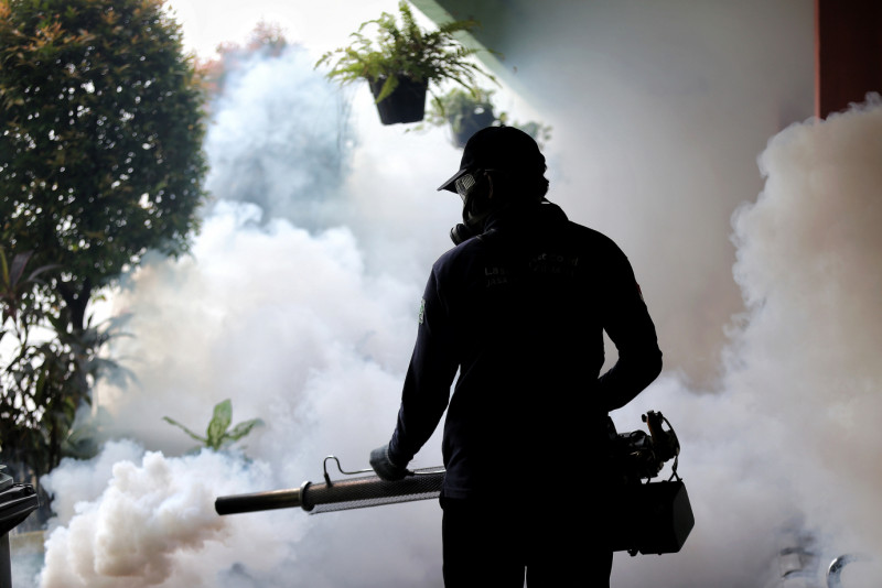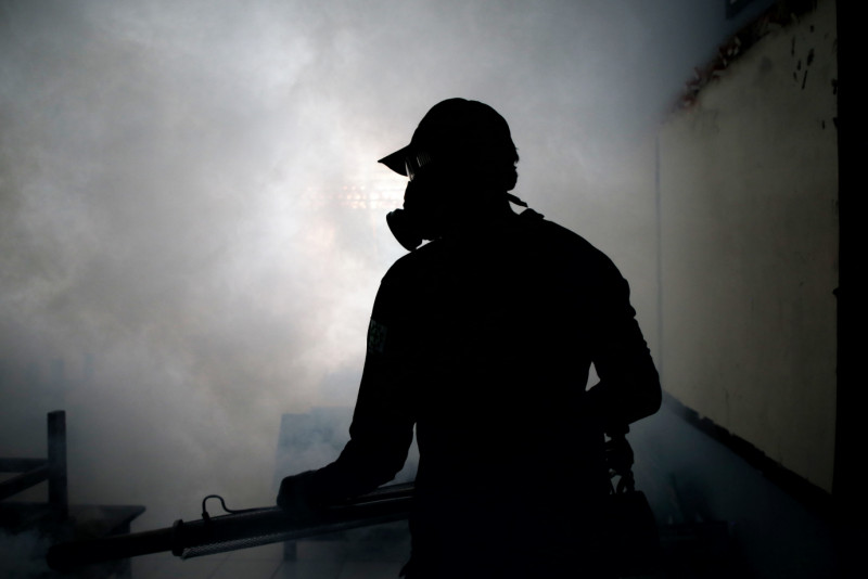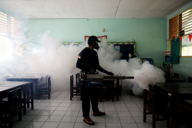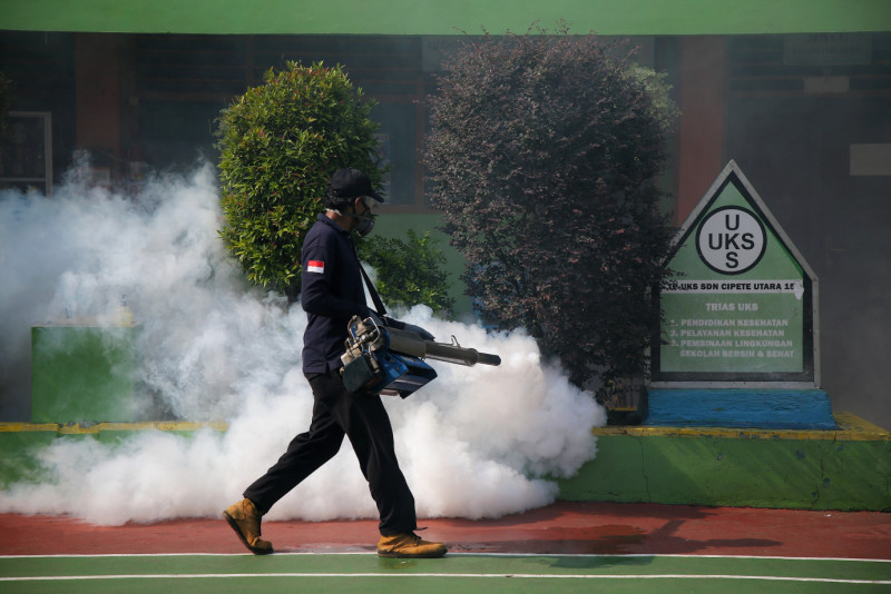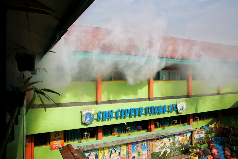 Suku Dinas Kesehatan Jakarta Selatan lakukan pengasapan atau fogging serentak di seluruh wilayah di Jakarta Selatan untuk membunuh nyamuk dewasa (Aedes aegypti), Kamis (4/4). Pengasapan atau fogging di SDN Cipete Utara 15 Pagi, Kebayoran Baru untuk memutus rantai penularan, juga menekan jumlah nyamuk agar risiko penyakit DBD menurun.