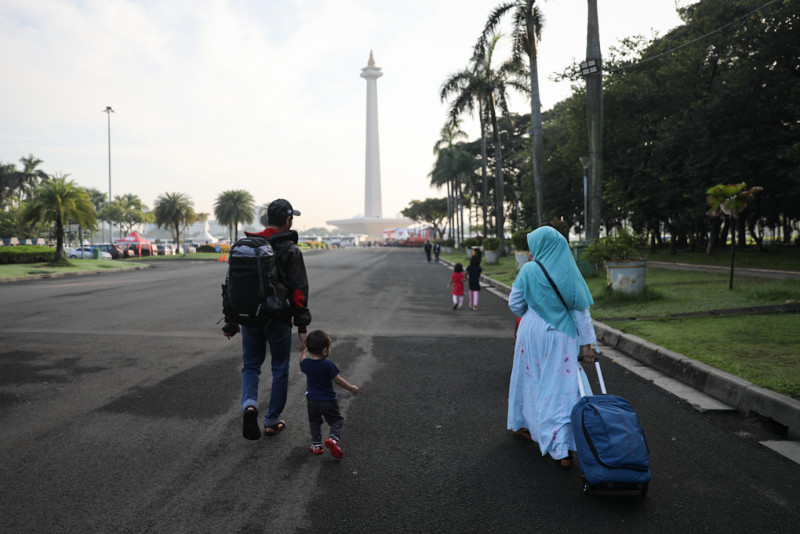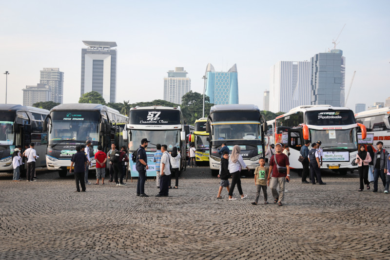 Sekretaris Daerah (Sekda) DKI Jakarta, Joko Agus Setyono melepas keberangkatan Mudik Gratis Pemprov DKI 2024 di Silang Barat Monumen Nasional (Monas), Gambir, Jakarta Pusat, Kamis (4/4). Sebanyak 279 bus yang mengangkut 12.170 penumpang diberangkatkan menuju sejumlah daerah di Pulau Jawa dan Sumatera secara serentak. #ramadan2024