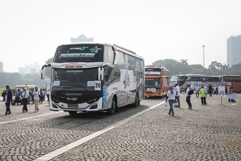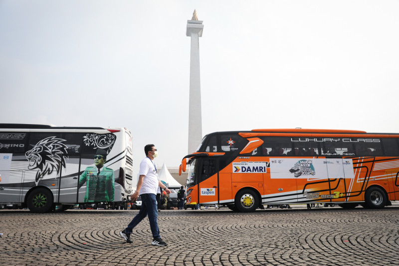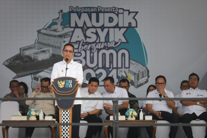 Penjabat (Pj) Gubernur DKI Jakarta, Heru Budi Hartono bersama Menteri BUMN, Erick Thohir dan Menteri Perhubungan, Budi Karya Sumadi melepas keberangkatan peserta Mudik Gratis Bersama BUMN 2024 di lapangan Monumen Nasional (Monas), Gambir, Jakarta Pusat, Jumat (5/4). Sebanyak 1.536 bus dengan jumlah penumpang 70.184 orang diberangkatkan menuju ke sejumlah wilayah di Indonesia. #ramadan2024