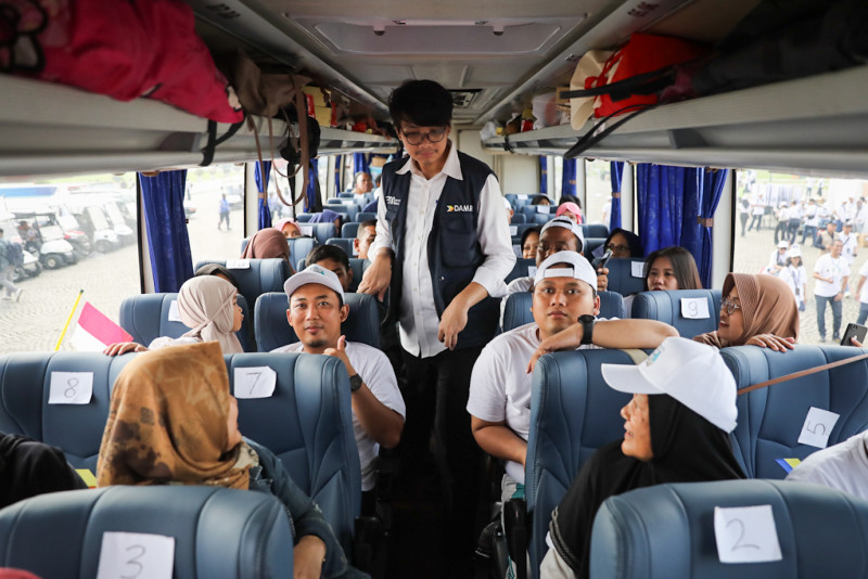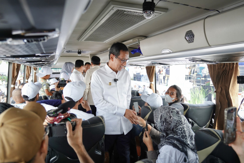 Pj Gubernur bersama Menhub dan Menteri BUMN Lepas Keberangkatan Mudik Gratis