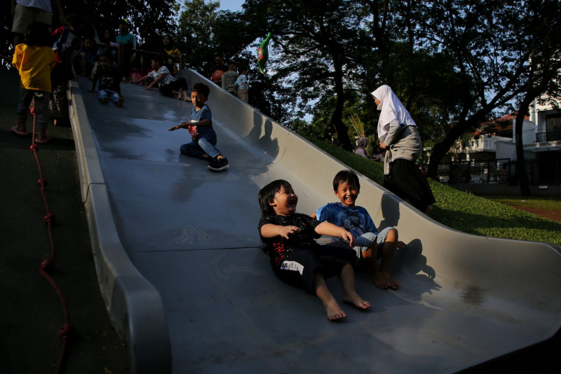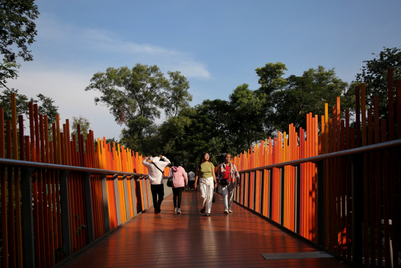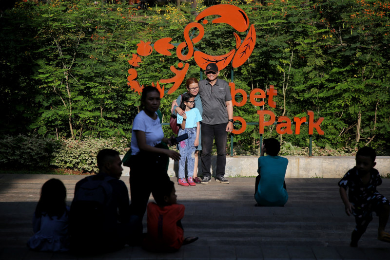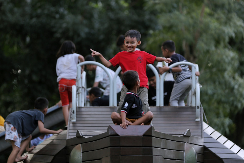 Memasuki H+4 Libur Hari Raya Idulfitri 1445 Hijriah, pengunjung menikmati berbagai fasilitas yang ada di Tebet Eco Park, Jalan Tebet Barat Raya, Tebet, Jakarta Selatan, Minggu (14/4). Pengelola mencatat sebanyak 15.414 warga yang telah berkunjung ke Tebet Eco Park sejak dibukanya tanggal 11 April kemarin. #lebaran2024