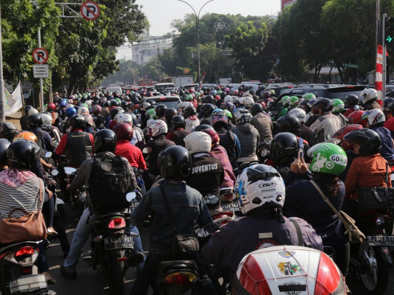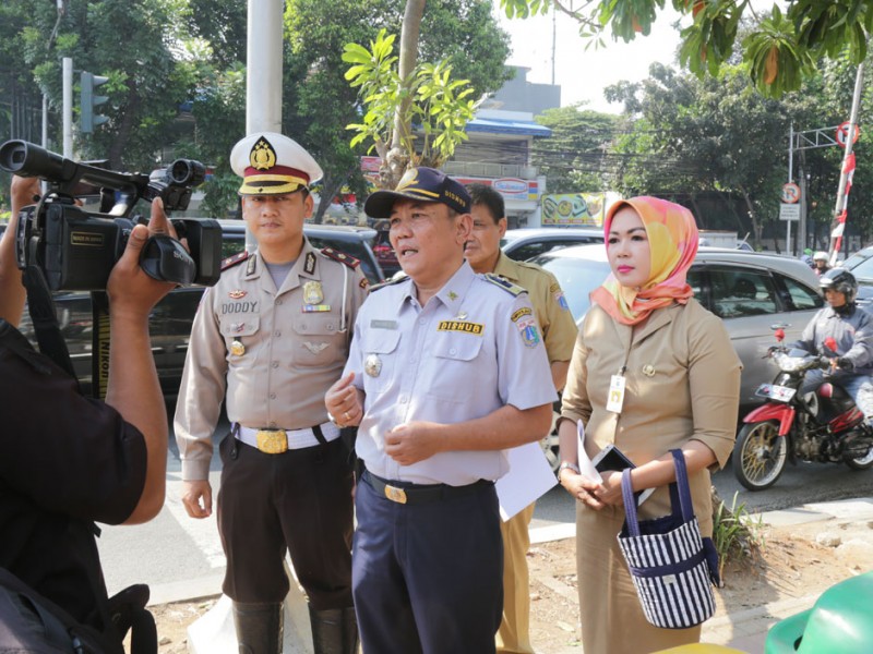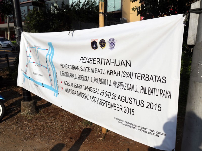 Suku Dinas Perhubungan dan Transportasi Jakarta Selatan memberlakukan uji coba sistem satu arah (SSA) terbatas di Jalan Persada Raya, Tebet, Jakarta Selatan, Rabu (2/9/2015). Rekayasa lalu lintas dilakukan menindaklanjuti keluhan warga terkait kemacetan yang sering terjadi di ruas jalan ini.(Foto: Reza/beritajakarta.com)