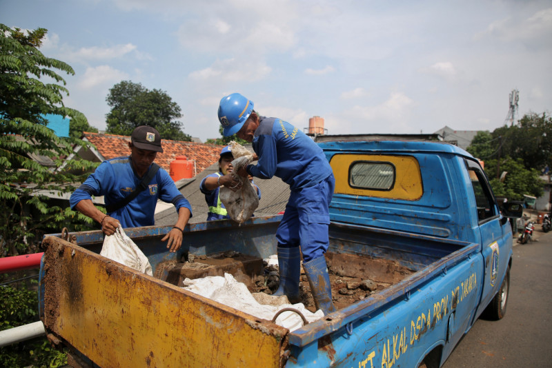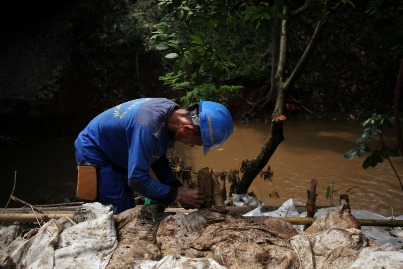 Satpel SDA Pasar Rebo Lakukan Perbaikan Sementara Turap Longsor