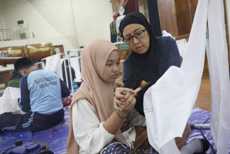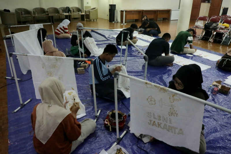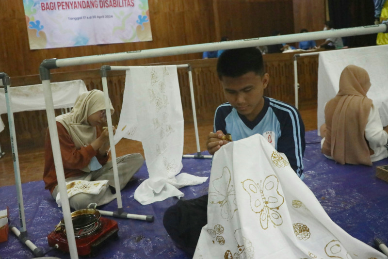 Suku Dinas (Sudin) Kebudayaan Jakarta Pusat menggelar pelatihan seni budaya membatik bagi penyandang disabilitas di Pusat Pelatihan Seni Budaya (PPSB) Jakarta Pusat, Senin (22/4). Pelatihan yang digelar dari 17 - 30 April ini diikuti 30 pelajar dari sejumlah SLB dan PKBM di Jakarta Pusat.