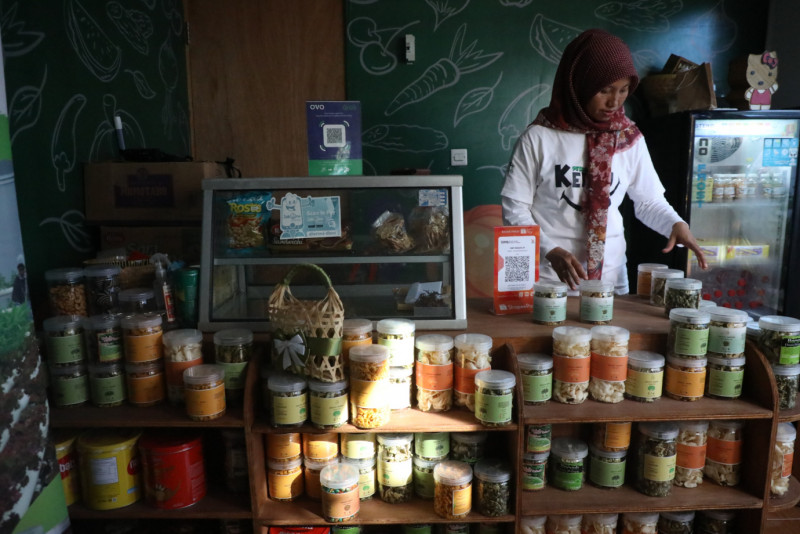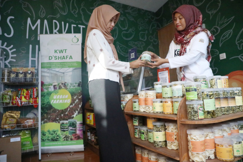 Menengok gerai UMKM D Shafa di Malakasari Edu Farm, Jalan Teratai Putih Raya, Duren Sawit, Jakarta Timur, Senin (22/4). Gerai ini menjual berbagai olahan tanaman hidroponik hasil dari Malakasari Edu Farm hingga kebutuhan pertanian dengan harga yang terjangkau mulai dari Rp.15.000 hingga Rp.25.000.