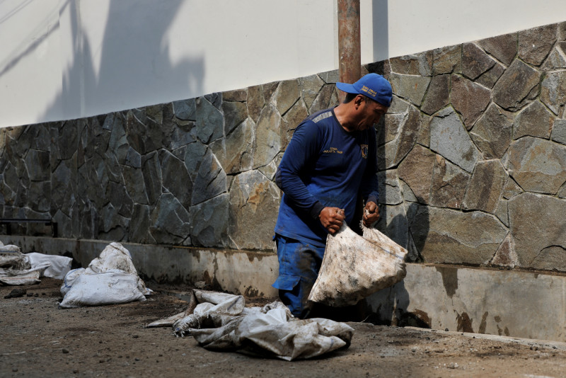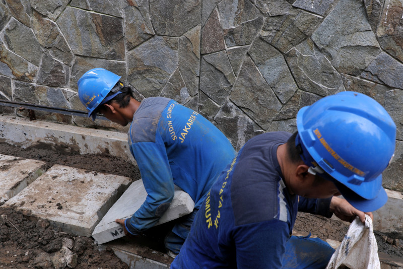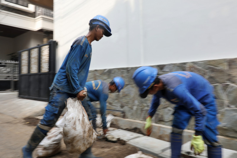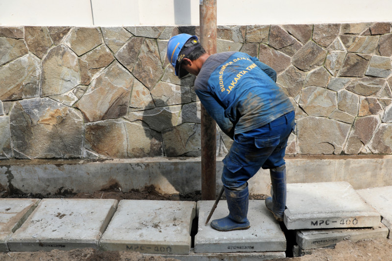 Satuan Pelaksana Sumber Daya Air (Satpel SDA) Kecamatan Pasar Rebo melakukan pemasangan u-ditch baru di Jalan Pondok Baru VII, Cijantung, Pasar Rebo, Jakarta Timur, Selasa (23/4). Pemasangan u-ditch baru sepanjang 41 meter dengan lebar uditch 40 sentimeter ini diharapkan dapat mengatasi genangan yang kerap melanda kawasan tersebut.