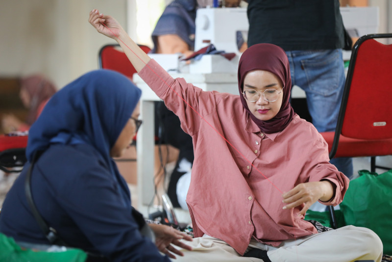 Sebanyak 50 peserta mengikuti pelatihan kriya di Aula Suku Dinas Tenaga Kerja, Transmigrasi dan Energi (Sudin Nakertransgi) Jakarta Utara, Rabu (24/4). Sudin Nakertransgi Jakarta Utara menggelar pelatihan kriya selama enam hari pada 23-28 April 2024.