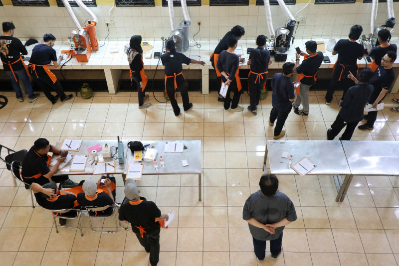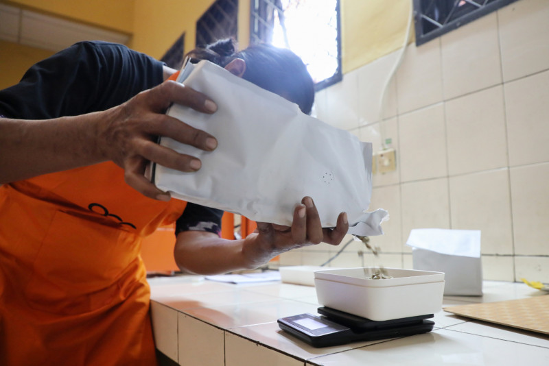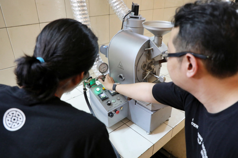 Dinas Ketahanan Pangan Kelautan dan Pertanian (KPKP) DKI Jakarta menggelar Bimbingan Teknis (Bimtek) dan Sertifikasi Penyangraian (Roasting) Biji Kopi Gratis Tahun 2024 di Pusat Pelatihan Pertanian Jalan I Gusti Ngurah Rai, Klender, Duren Sawit, Jakarta Timur, Rabu (24/4). Kegiatan pengolahan biji kopi yang merupakan program berkelanjutan pada akhir tahun 2022 ini untuk menghasilkan berbagai produk olahan kopi yang dilanjutkan dengan sertifikat BNSP.