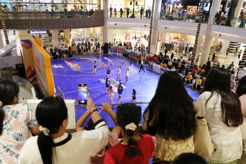 Serunya Pertandingan Bola Basket di Tengah Pusat Perbelanjaan