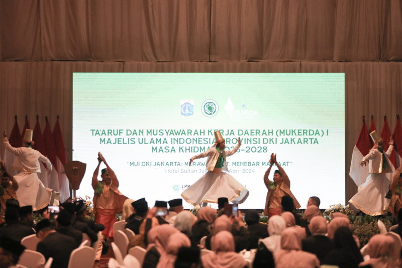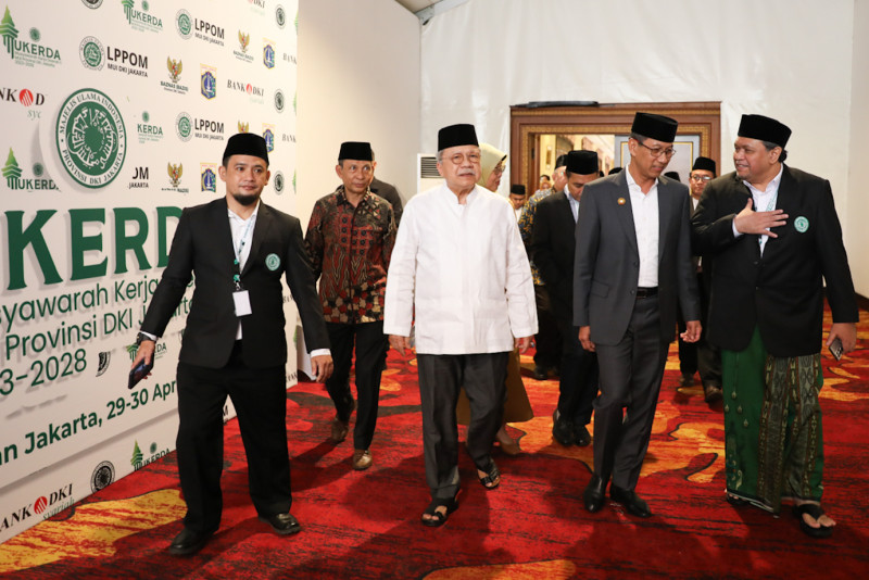 Penjabat (Pj) Gubernur DKI Jakarta, Heru Budi Hartono membuka Musyawarah Kerja Daerah (Mukerda) I Majelis Ulama Indonesia (MUI) Provinsi DKI Jakarta di Hotel Sultan, Tanah Abang, Jakarta Pusat, Senin (29/4). Dalam Mukerda tersebut, Ketua MUI Pusat, KH Anwar Ibrahim melantik pengurus MUI masa khidmat 2023-2028.