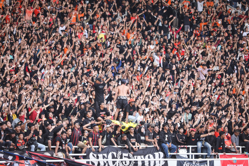 Kesebelasan Persija Jakarta bertanding melawan PSIS Semarang pada pertandingan laga akhir Liga 1 2023-2024 di Stadion Utama Gelora Bung Karno (SUGBK), Jakarta Pusat, Selasa (30/4). Dalam laga yang dihadiri 18.124 penontom tersebut, Persija Jakarta mengalahkan PSIS Semarang dengan skor 2-1.