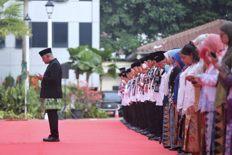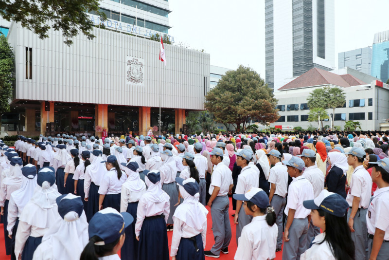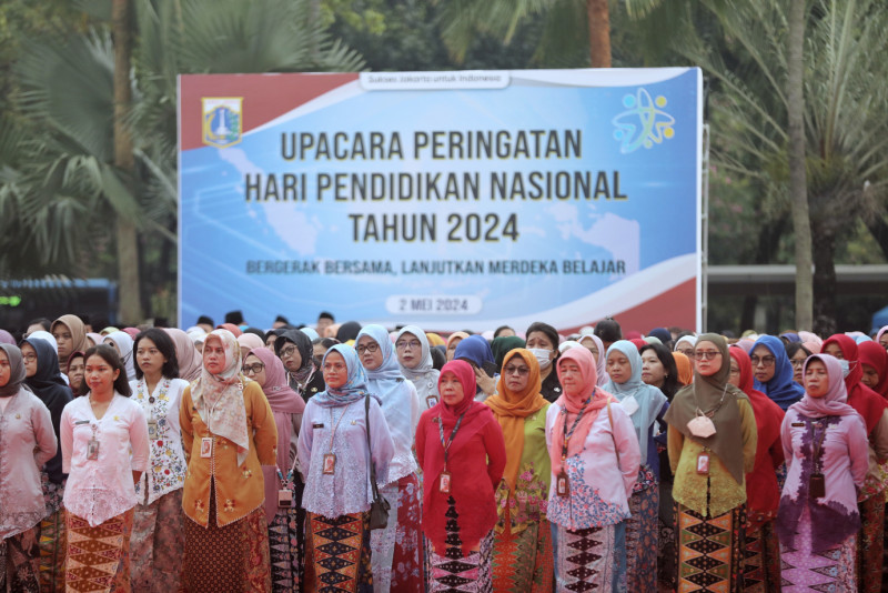 Pemerintah Provinsi (Pemprov) DKI Jakarta menggelar upacara peringatan Hari Pendidikan Nasional (Hardiknas) 2024 di halaman Balai Kota DKI Jakarta, Gambir, Jakarta Pusat, Kamis (2/5). Upacara yang diikuti oleh perwakilan insan pendidikan ini dipimpin oleh Sekretaris Daerah Provinsi DKI Jakarta, Joko Agus Setyono selaku Inspektur Upacara.