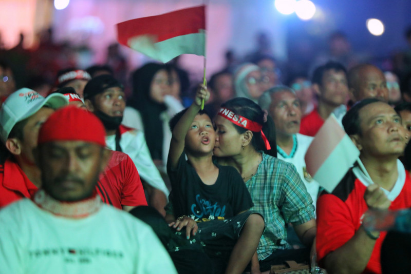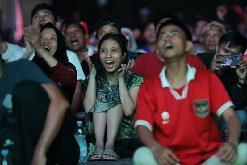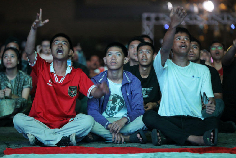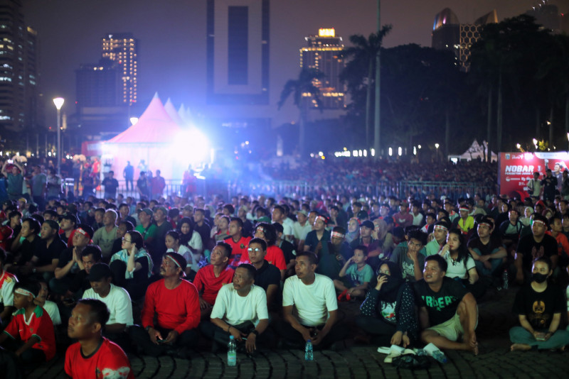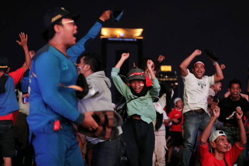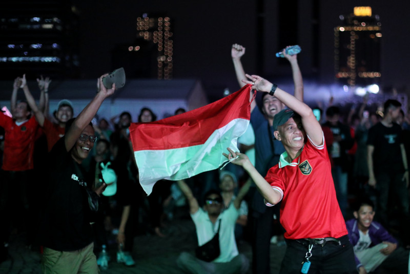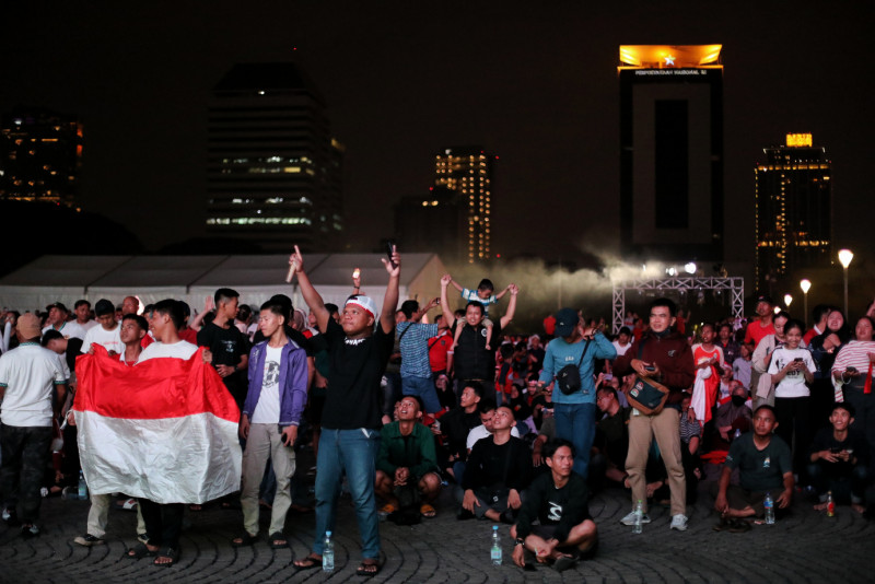 Ragam Ekspresi Suporter Timnas Saat Nobar di Plaza Selatan Monas