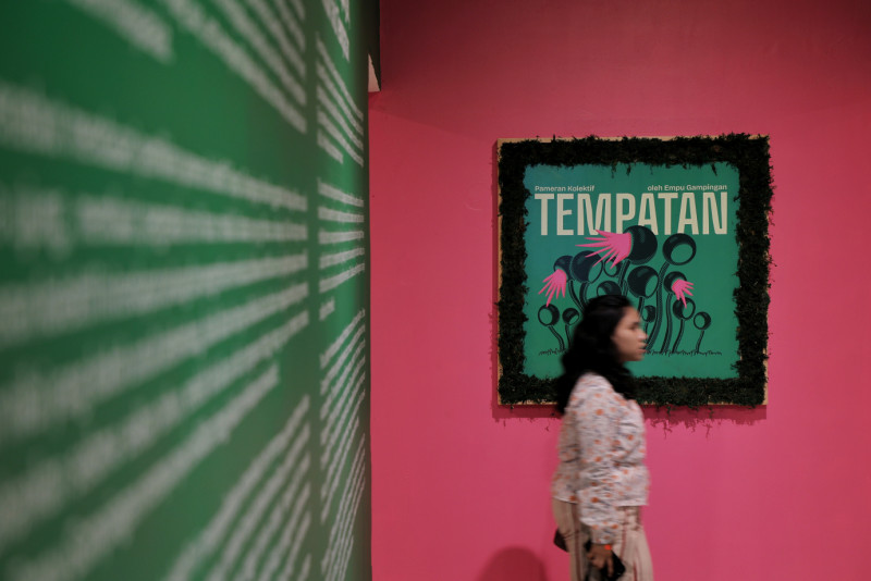 Melihat pameran \"Tempatan\" di Gedung D Galeri Nasional Indonesia, Gambir, Jakarta Pusat. Pameran yang digagas oleh komunitas perupa perempuan Yogyakarta, Empu Gampingan ini digelar pada tanggal 2 - 16 Mei 2024 di Gedung D Galeri Nasional Indonesia, pada pukul 09.00 - 19.00 WIB.