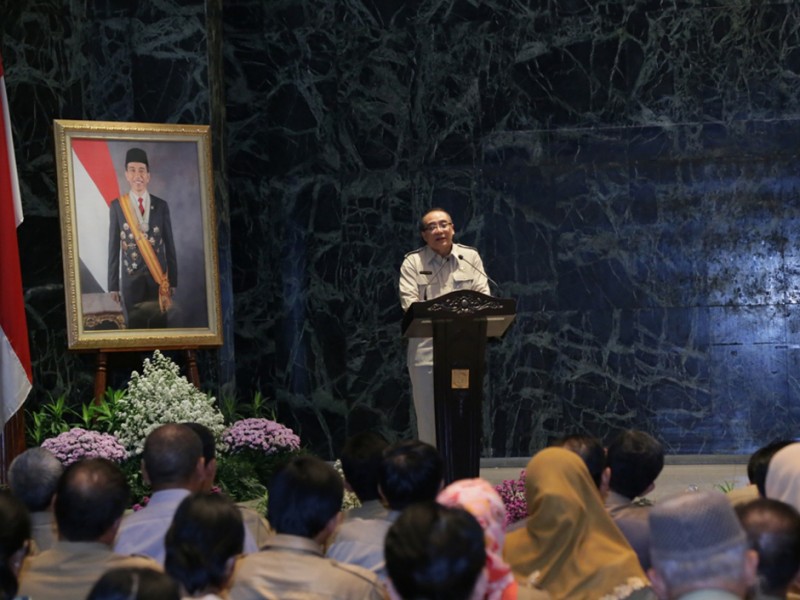 Gubernur DKI Jakarta, Basuki Tjahaja Purnama meresmikan sistem Pendataan Ulang Pegawai Negeri Sipil secara elektronik (e-PUPNS) Tahun 2015 di Balai Kota DKI Jakarta, Rabu (2/9/2015). Pendataan Ulang PNS secara elektronik bertujuan mendapatkan data PNS di Pemerintah Provinsi (Pemprov) DKI Jakarta yang real dan akurat. (Foto: Yopie/beritajakarta.com)