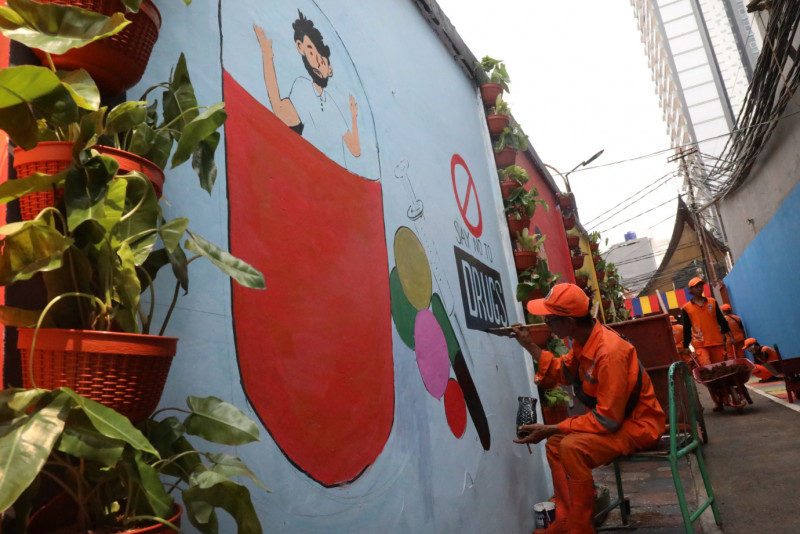 60 petugas Penanganan Prasarana dan Sarana Umum (PPSU) di wilayah Kecamatan Menteng melakukan penataan kawasan di RW 05 Kelurahan Kebon Sirih, Jakarta Pysat, Selasa (7/5). Kegiatan penataan kawasan ini dalam rangka peningkatan kualitas permukiman menjadi kawasan percontohan.