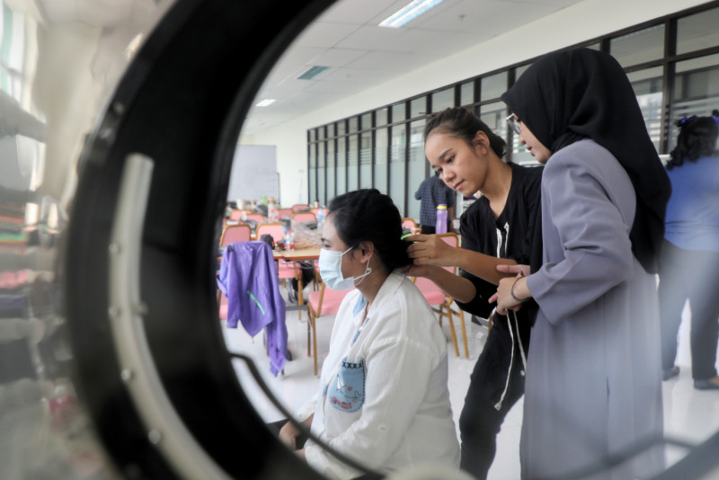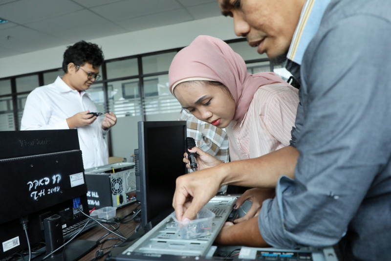 Pusat Pelatihan Kerja Daerah (PPKD) Jakarta Pusat memberikan pelatihan kerja gratis di PPKD Jakarta Pusat, Jalan Karet Pasar Baru Barat, Karet Tengsin, Tanah Abang, Jakarta Pusat, Selasa (7/5). Pelatihan yang diikuti 320 peserta dari 16 kejuruan ini dalam rangka membekali keterampilan, agar siap memasuki dunia kerja.