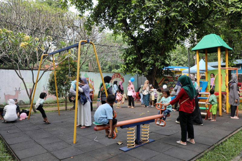 Puskesmas Ciracas menggelar peringatan Pekan Imunusisasi Dunia tahun 2024 di RPTRA Susukan Ceria, Ciracas, Jakarta Timur, Rabu (8/5). Pekan Imunisasi yang mengusung tema \"Imunisasi Lengkap, Jangan Terlambat\" ini diharapkan dapat meningkatkan capaian imunisasi untuk balita di wilayah Jakarta Timur.