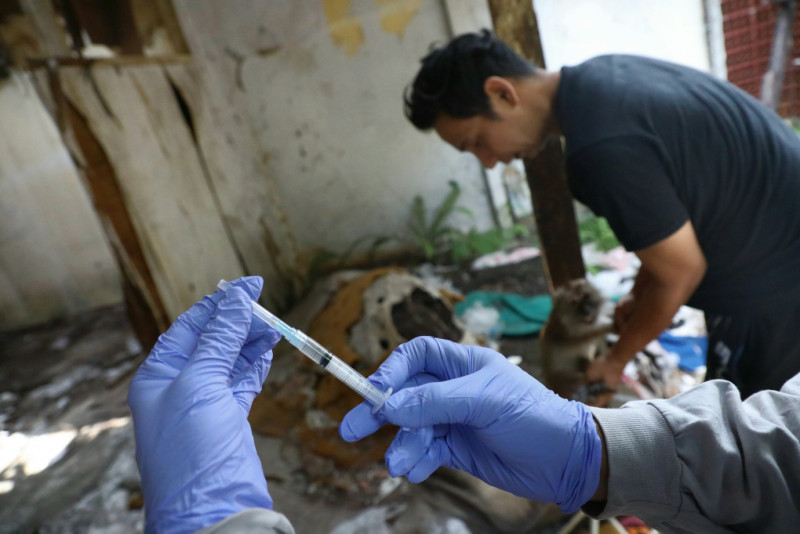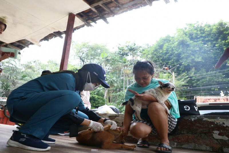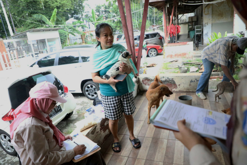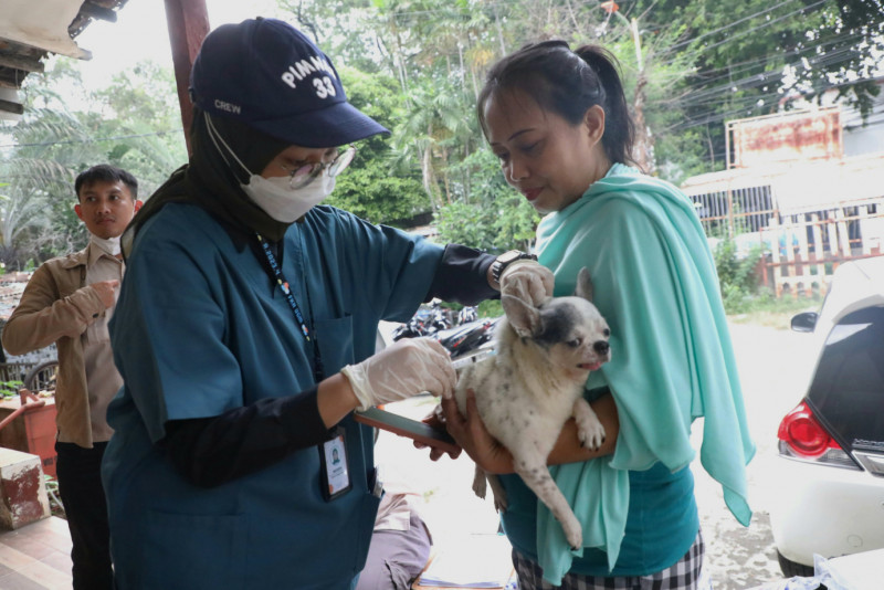 Suku Dinas Ketahanan Pangan Kelautan dan Pertanian (Sudin KPKP) Jakarta Pusat menggelar Vaksinasi Hewan Pembawa Rabies (HPR) di Jalan Samratulangi, Gondangdia, Menteng, Jakarta Pusat, Senin (13/5). Dalam kegiatan vaksinasi ini sebanyak 27 HPR berhasil divaksinasi terdiri dari, 24 anjing, dua ekor kucing dan satu ekor kera.