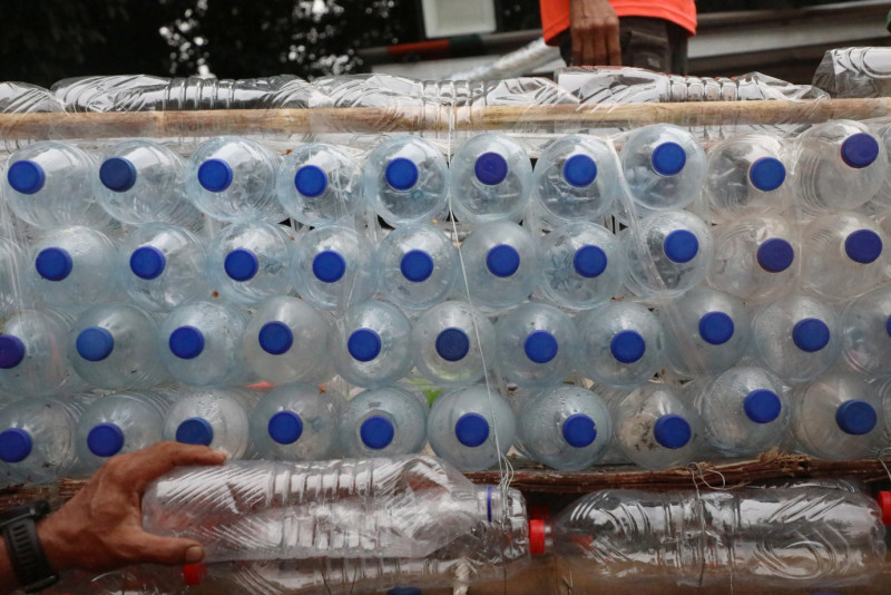 Petugas UPS Badan Air DLH Manfaatkan Botol Tidak Terpakai Jadi Perahu
