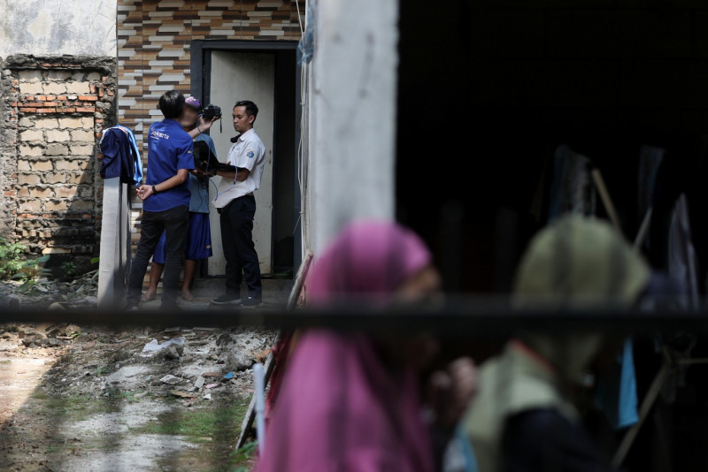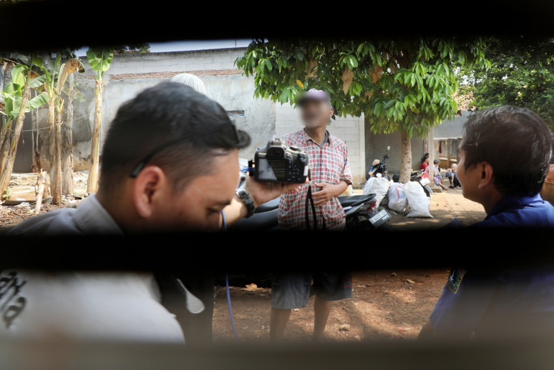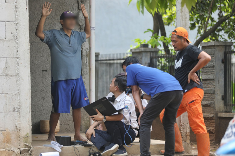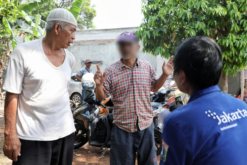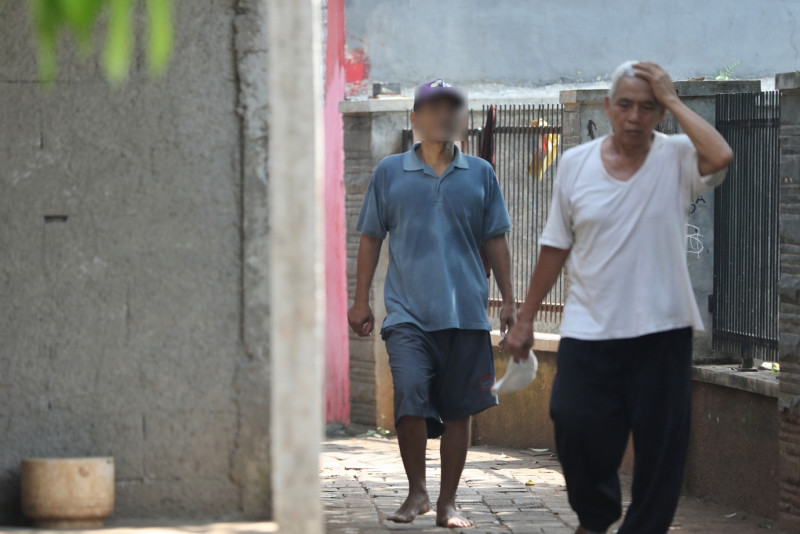 Pencatatan Sipil (Sudin Dukcapil) Jakarta Timur melakukan perekaman e-KTP pada warga ODGJ dengan cara jemput bola di Jalan Waru I, Cilangkap, Cipayung, Jakarta Timur, Rabu (15/5). Kegiatan yang dilakukan atas permintaan keluarga dan dalam perekaman identitas sempat terjadi terkendala karena warga ODGJ yang diketahui bernama Suriadi (53) ini sempat menolak dilakukan perekaman e-KTP, hingga akhirnya petugas dan pihak keluarga berhasil menenangkannya.