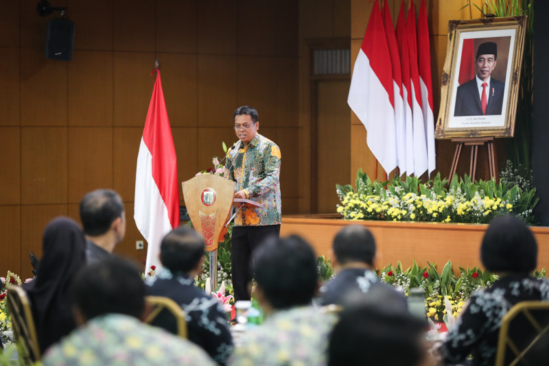 Sekretaris Daerah (Sekda) Provinsi DKI Jakarta, Joko Agus Setyono memberikan sambutan sekaligus membuka Bimbingan Teknis (Bimtek) Implementasi Pendidikan Antikorupsi untuk pejabat Pemprov DKI Jakarta di Ruang Bahari Kantor Wali Kota Jakarta Utara, Kamis (16/5). Bimtek tersebut terselenggara atas kerja sama antara Inspektorat Provinsi DKI Jakarta bersama Komisi Pemberantasan Korupsi (KPK) Republik Indonesia yang ditujukan untuk pejabat administrator di lima wilayah Kota dan Kabupaten Kepulauan Seribu.