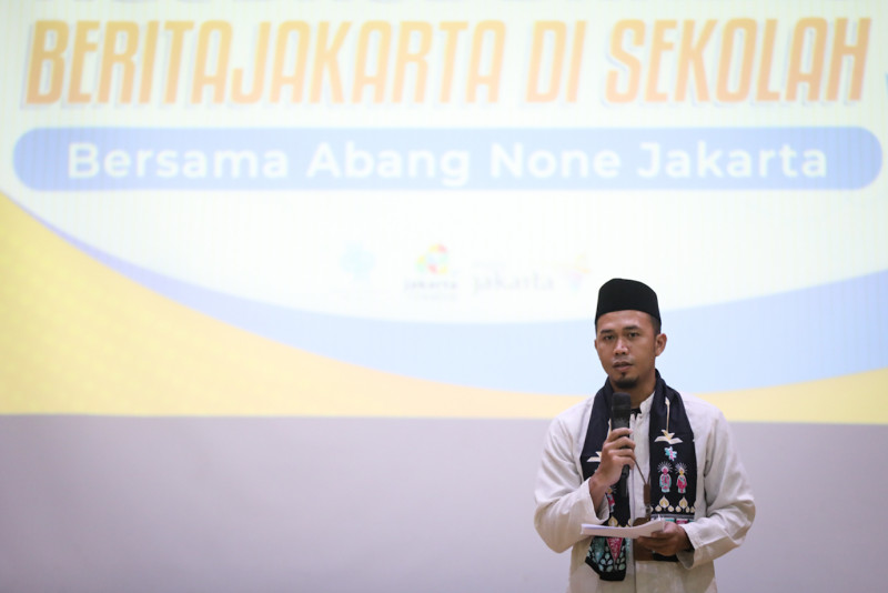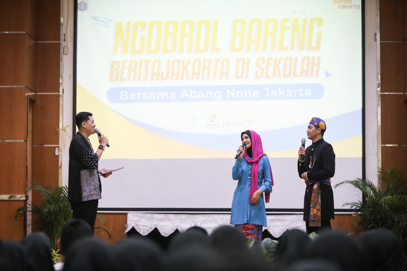 Website berita resmi Pemprov DKI Jakarta, Beritajakarta menggelar talk show bertajuk Ngobrol Bareng Beritajakarta di Sekolah Bersama Abang None Jakarta di SMK Negeri 57, Pasar Minggu, Jakarta Selatan, Jumat (17/5). Beritajakarta bekerja sama dengan Dinas Pendidikan dan Dinas Pariwisata dan Ekonomi Kreatif menghadirkan talk show tentang budaya dan pariwisata di Jakarta dengan narasumber Abang None 2023 yakni Syaiful Islam Nabawi dan Nur Hanifah.