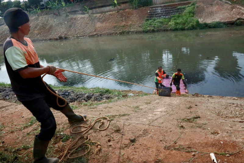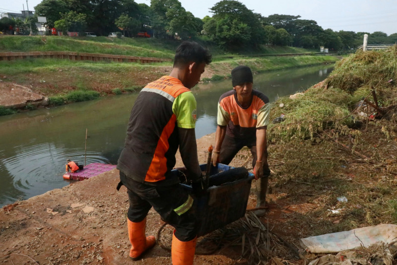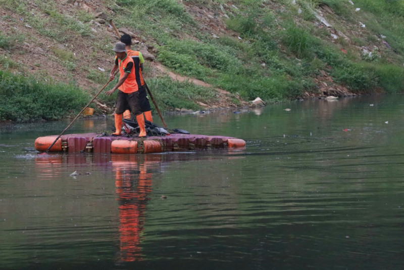 Petugas UPS Badan Air Dinas LH Bersihkan Aliran KBT Hulu