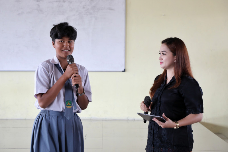 Tim Beritajakarta bekerja sama dengan Dinas Pendidikan dan Dinas Pariwisata dan Ekonomi Kreatif menggelar talk show bertajuk Ngobrol Bareng Beritajakarta di Sekolah Bersama Abang None Jakarta di SMK Negeri 60, Duri Kepa, Kebon Jeruk, Jakarta Barat, Senin (20/5). Talkshow tentang budaya dan pariwisata Jakarta ini diikuti 150 siswa SMKN 60 Jakarta.