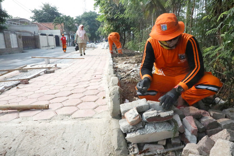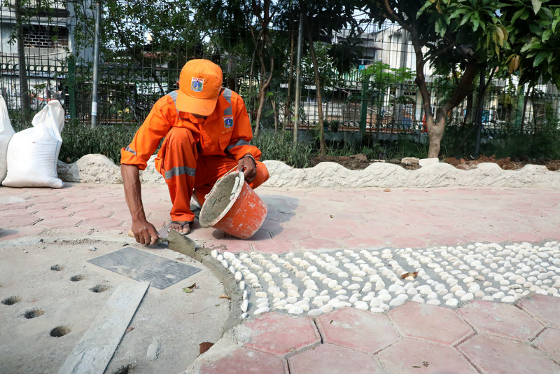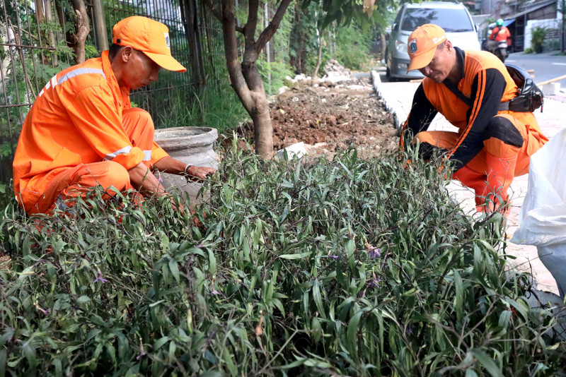 Petugas PPSU Kerjakan Penataan Kawasan di Tebet Timur