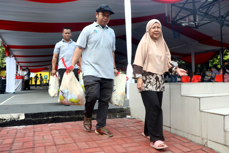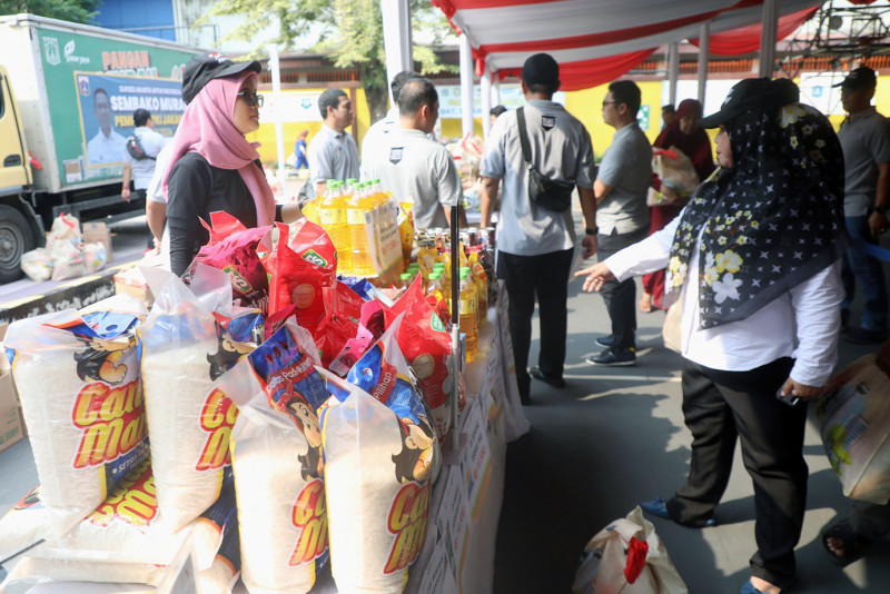 Paket sembako yang dijual seharga Rp 100.000 terdiri dari lima kilogram beras, satu kilogram gula pasir, satu kilogram tepung terigu, dan dua liter minyak goreng.
