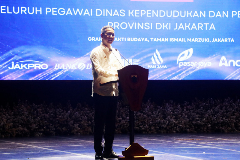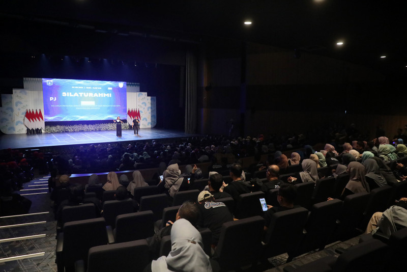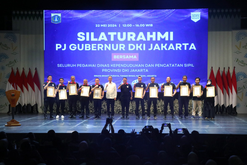 Penjabat (Pj) Gubernur DKI Jakarta, Heru Budi Hartono menghadiri acara silaturahmi bersama para pegawai Dinas Kependudukan dan Pencatatan Sipil (Dukcapil) DKI Jakarta di Graha Bhakti Budaya, Taman Ismail Marzuki, Jakarta Pusat. Rabu (22/5). Pj Gubernur mengapresiasi inovasi dan prestasi yang telah dihadirkan Dinas Dukcapil DKI untuk melayani kebutuhan masyarakat.