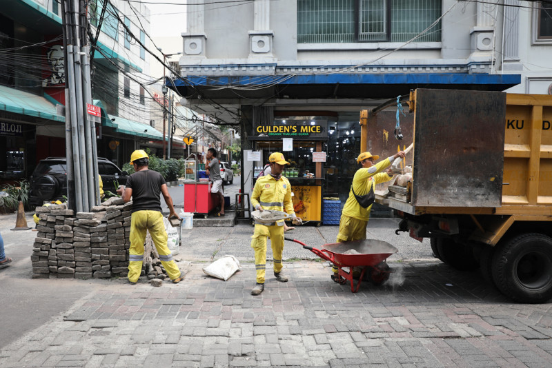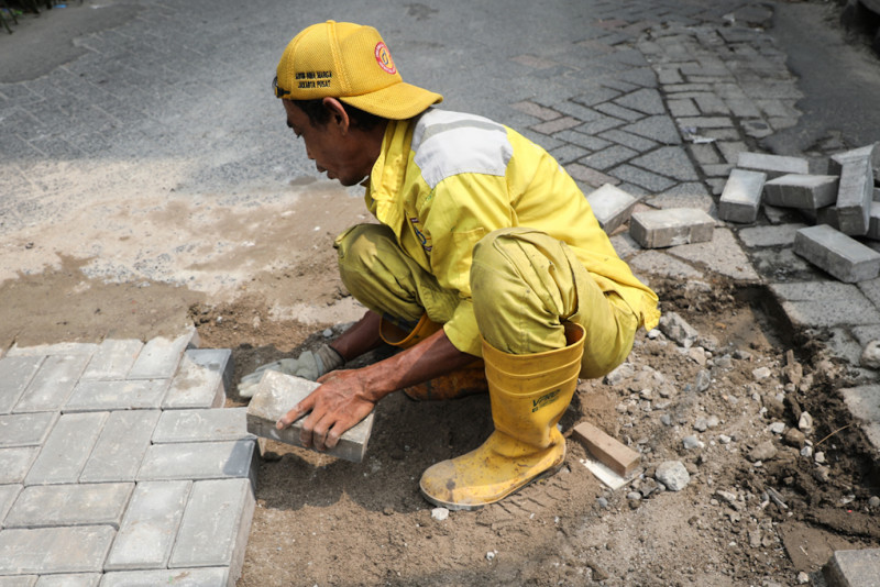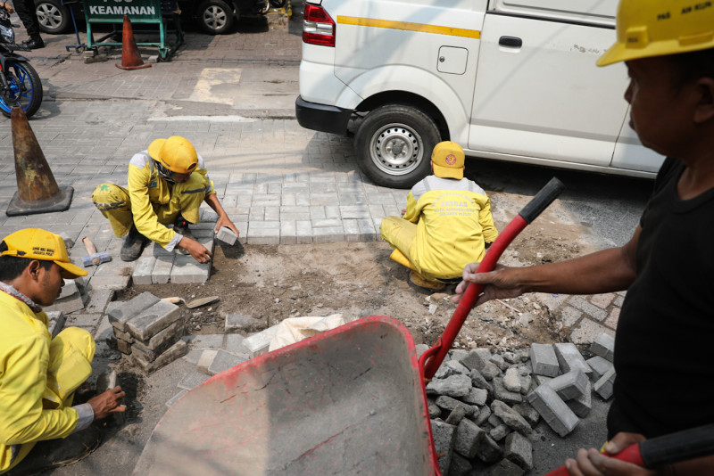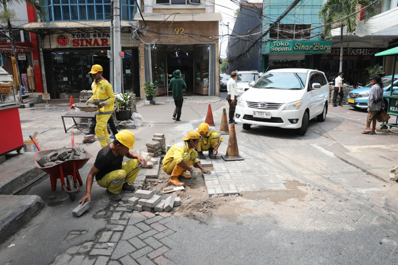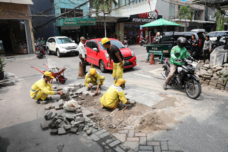 Satpel Bina Marga Sawah Besar Perbaiki Bidang Jalan Pasar Baru