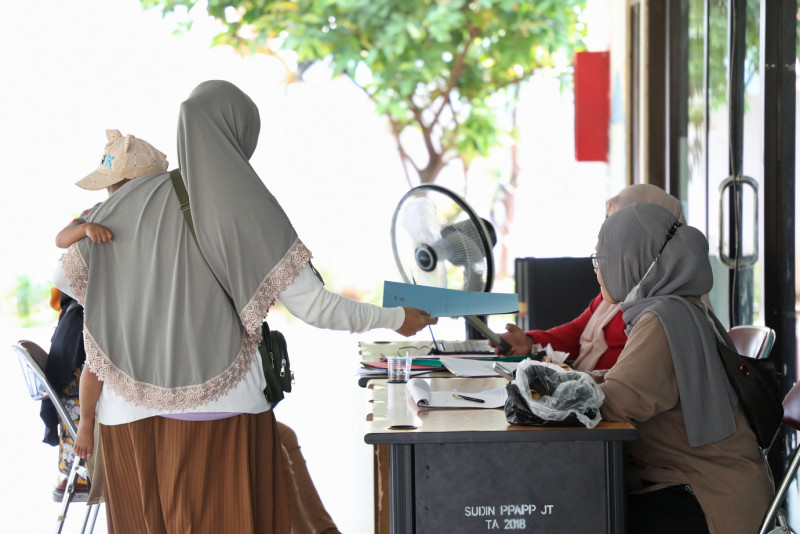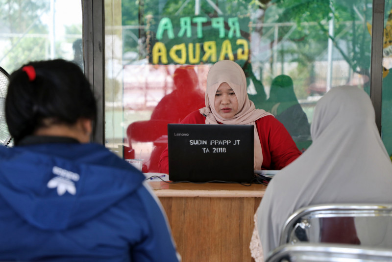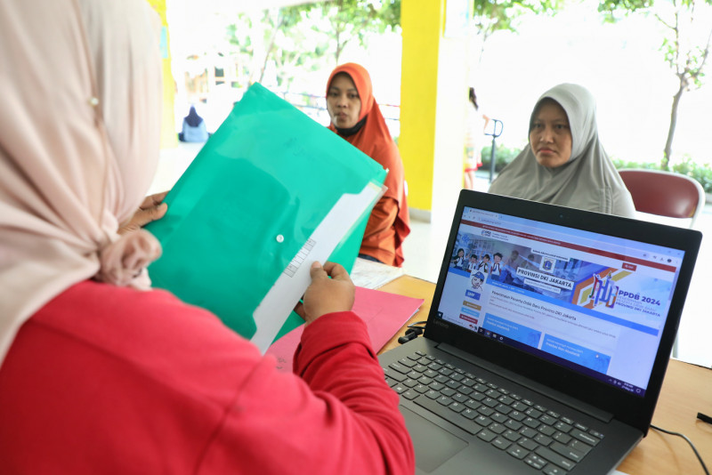 Pengelola Ruang Publik Terpadu Ramah Anak (RPTRA) Garuda Cilangkap membuka layanan untuk membantu warga mendaftarkan sekolah anaknya melalui sistem penerimaan peserta didik baru (PPDB) secara online di RPTRA Garuda, Cilangkap, Cipayung, Jakarta Timur, Senin (27/5). Layanan bantuan ini rutin dilakukan sejak 2019 lalu untuk membantu masyarakat yang masih kesulitan atau tidak memahami tata cara PPDB secara online.
