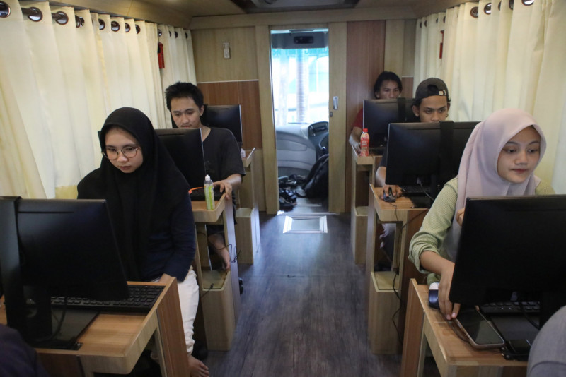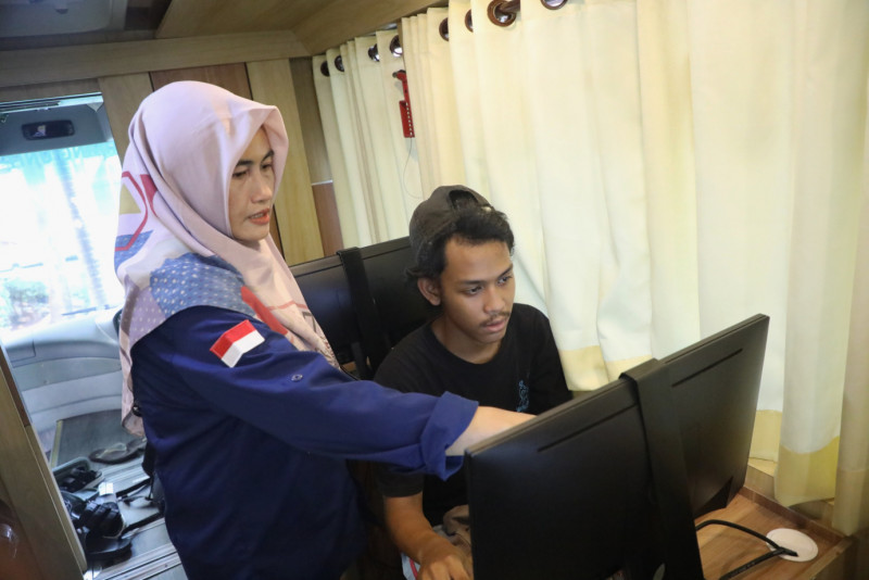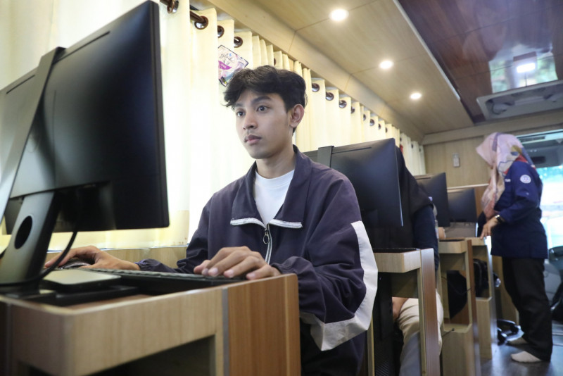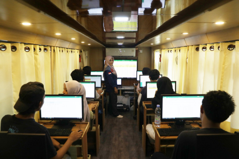 Pusat Pelatihan Kerja Daerah (PPKD) Jakarta Utara menggelar program pelatihan kerja Mobile Training Unit (MTU) bidang operator komputer di halaman kantor Kelurahan Papanggo, Jalan Metrop Kencana Raya, Tanjung Priok, Jakarta Utara, Selasa (28/5). Pelatihan ini digelar dari 14 Mei hingga 11 Juni 2024 diikuti 10 peserta yang berasal dari warga Kelurahan Papanggo.