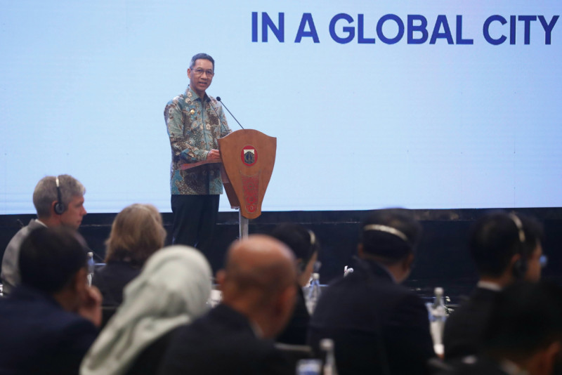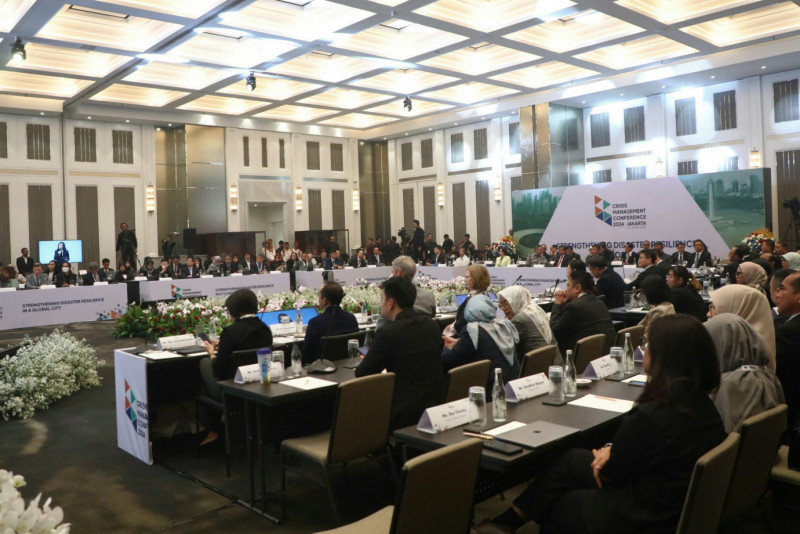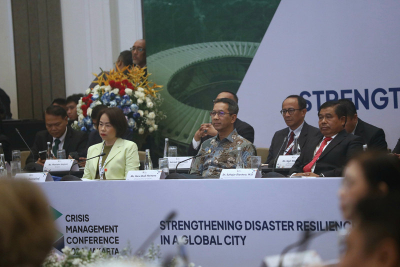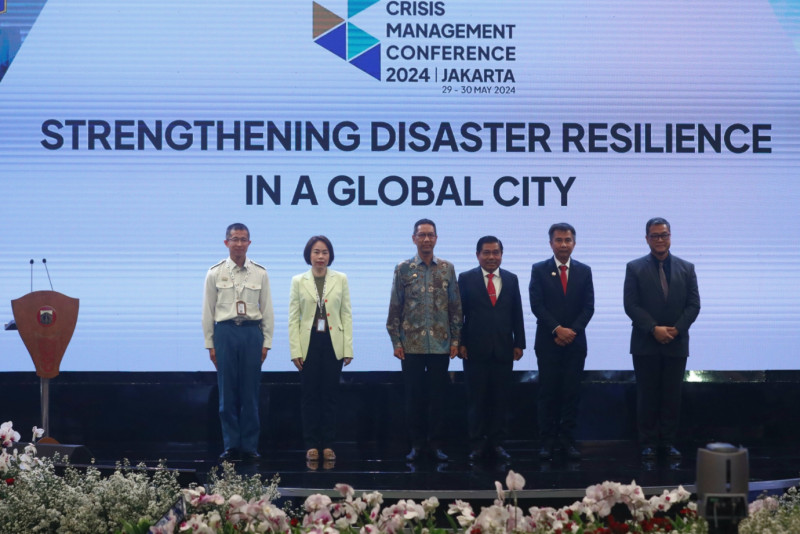 Penjabat (Pj) Gubernur DKI Jakarta, Heru Budi Hartono membuka Konferensi Manajemen Krisis (Crisis Management Conference/CMC) 2024 di The Langham Ballroom, Senayan, Kebayoran Baru Jakarta Selatan, Rabu (29/5). Konferensi Manajemen Krisis (Crisis Management Conference/CMC) 2024 digelar selama dua hari pada 29-30 Mei 2024 mengangkat tema \'Stengthening Disaster Resilience In A Global City\'.