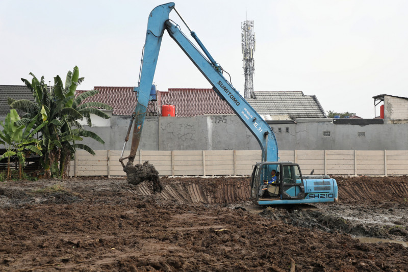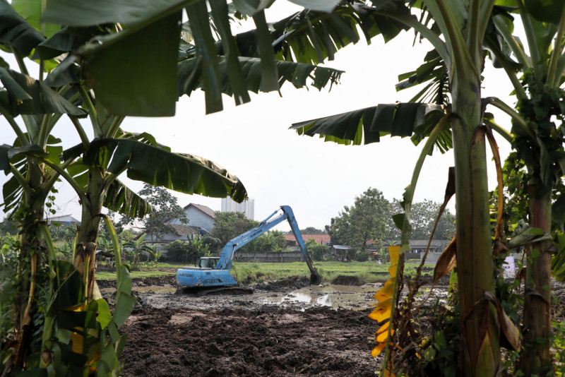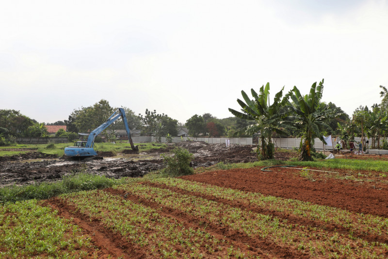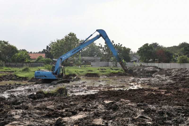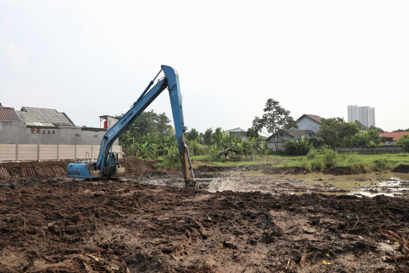 Pemerintah Kota Jakarta Timur mulai membangun Waduk Mandor Hasan di Jalan Mandor Hasan RW 01 Bambu Apus, Cipayung, Jakarta Timur, Rabu (29/5). Pembangunan Waduk sekitar 3.000 meter persegi pada lahan seluas 2,2 hektar ini untuk mengatasi masalah genangan di kawasan tersebut, sekaligus menindaklanjuti aspirasi masyarakat.