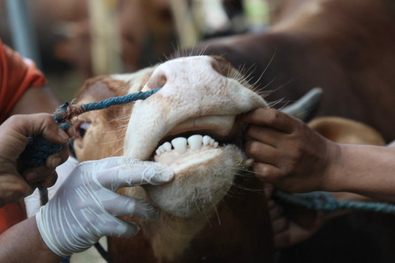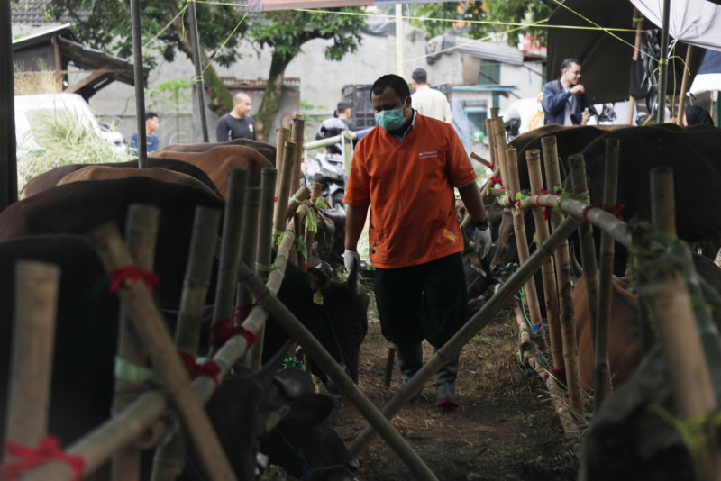 Suku Dinas Ketahanan Pangan, Kelautan dan Pertanian (Sudin KPKP) Jakarta Barat melakukan monitoring dan pengawasan hewan kurban di tempat penampungan hewan kurban Faatihah di Jalan Swadarma Raya, Srengseng, Kembangan, Jakarta Barat, Senin (3/6). monitoring dan pengawasan ini dilakukan dalam rangka pengecekan kesehatan hewan kurban yang ada pada tempat-tempat penampungan dalam rangka menyambut Iduladha 1445 hijriah/2024 Masehi. #iduladha2024