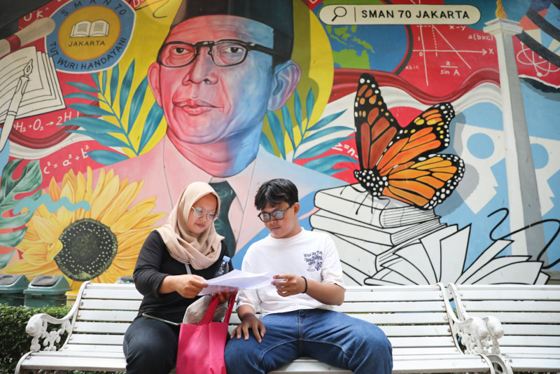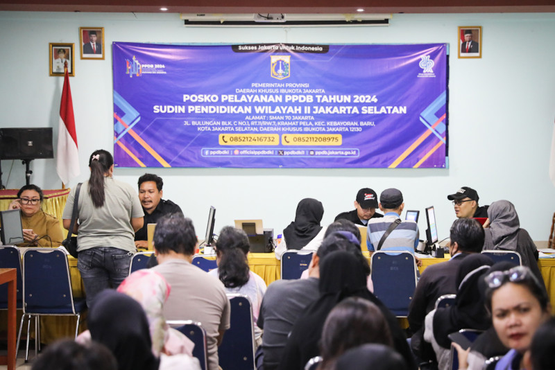 Sejumlah orang tua calon peserta didik mendatangi posko pra-pendaftaran Penerimaan Peserta Didik Baru (PPDB) tahun 2024 di SMAN 70 Bulungan, Kebayoran Baru, Jakarta Selatan, Selasa (4/6). Petugas dari Suku Dinas Kependudukan dan Catatan Sipil (Sudin Dukcapil) serta Sudin Pendidikan Wilayah II Jakarta Selatan disiagakan untuk melayani orang tua calon peserta didik yang mengalami kendala terkait PPDB.
