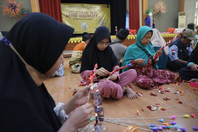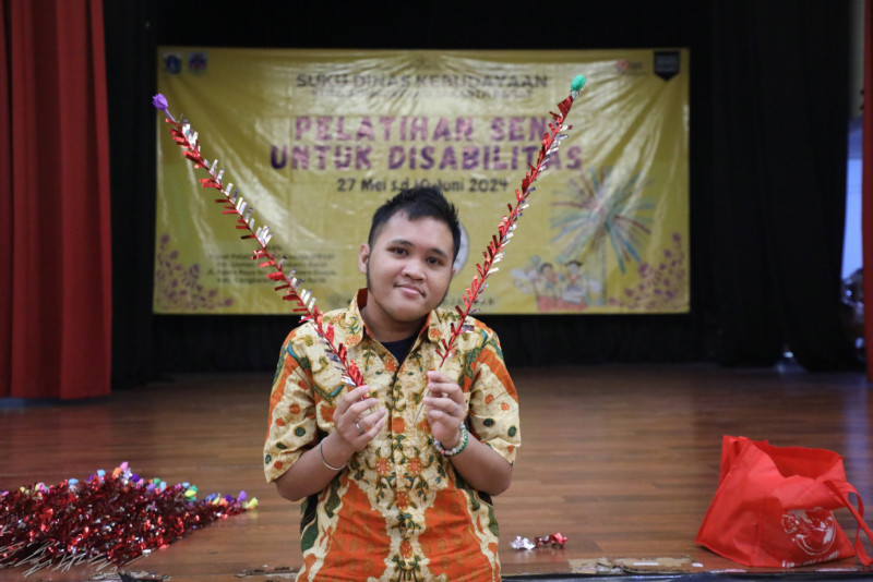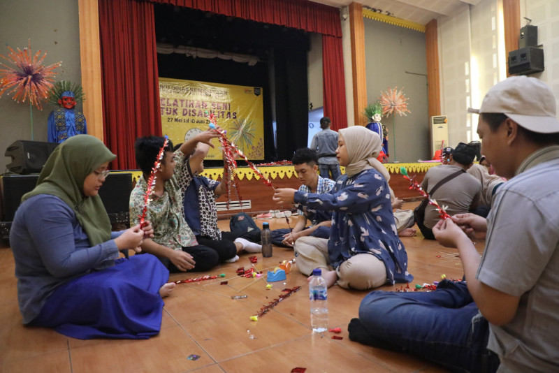 Suku Dinas Kebudayaan Jakarta Barat menggelar pelatihan seni untuk penyandang disabiitas di Pusat Pelatihan Seni Budaya (PPSB) Usman Perak, Jalan Rama Raya, Rawa Buaya, Cengkareng, Jakarta Barat, Selasa (4/6). Kegiatan ini digelar mulai dari 27 Mei hingga 10 Juni 2024, diikuti 30 peserta yang berasal dari Unit Informasi Layanan Sosial (UILS) dan Loka Bina Karya berasal Sudin Dinas Sosial Jakarta Sosial Jakarta Barat.