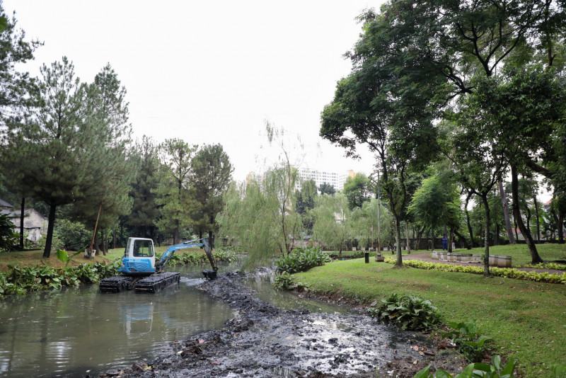 Sudin SDA Jaksel Keruk Lumpur Waduk Taman Sepat