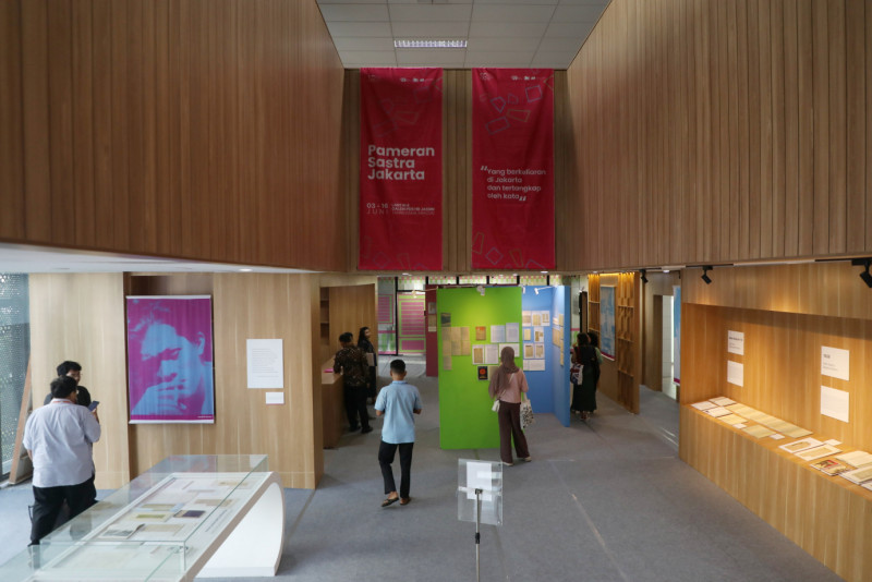 Dinas Perpustakaan dan Kearsipan (Dispusip) DKI Jakarta menggelar Pameran Sastra Jakarta 2024 dengan tema \"Yang berkeliaran di Jakarta dan tertangkap oleh kata\" di Galeri PDS HB Jassin, Taman Ismail Marzuki, Cikini, Menteng, Jakarta Pusat, Jumat (7/6) Pameran sastra yang digelar dari 3-16 Juni 2024 ini menampilkan kekayaan sastra lokal khususnya kesusastraan Betawi dan Jakarta karya pelajar SMA, mahasiswa, guru, komunitas dan pegiat sastra serta masyarakat umum.